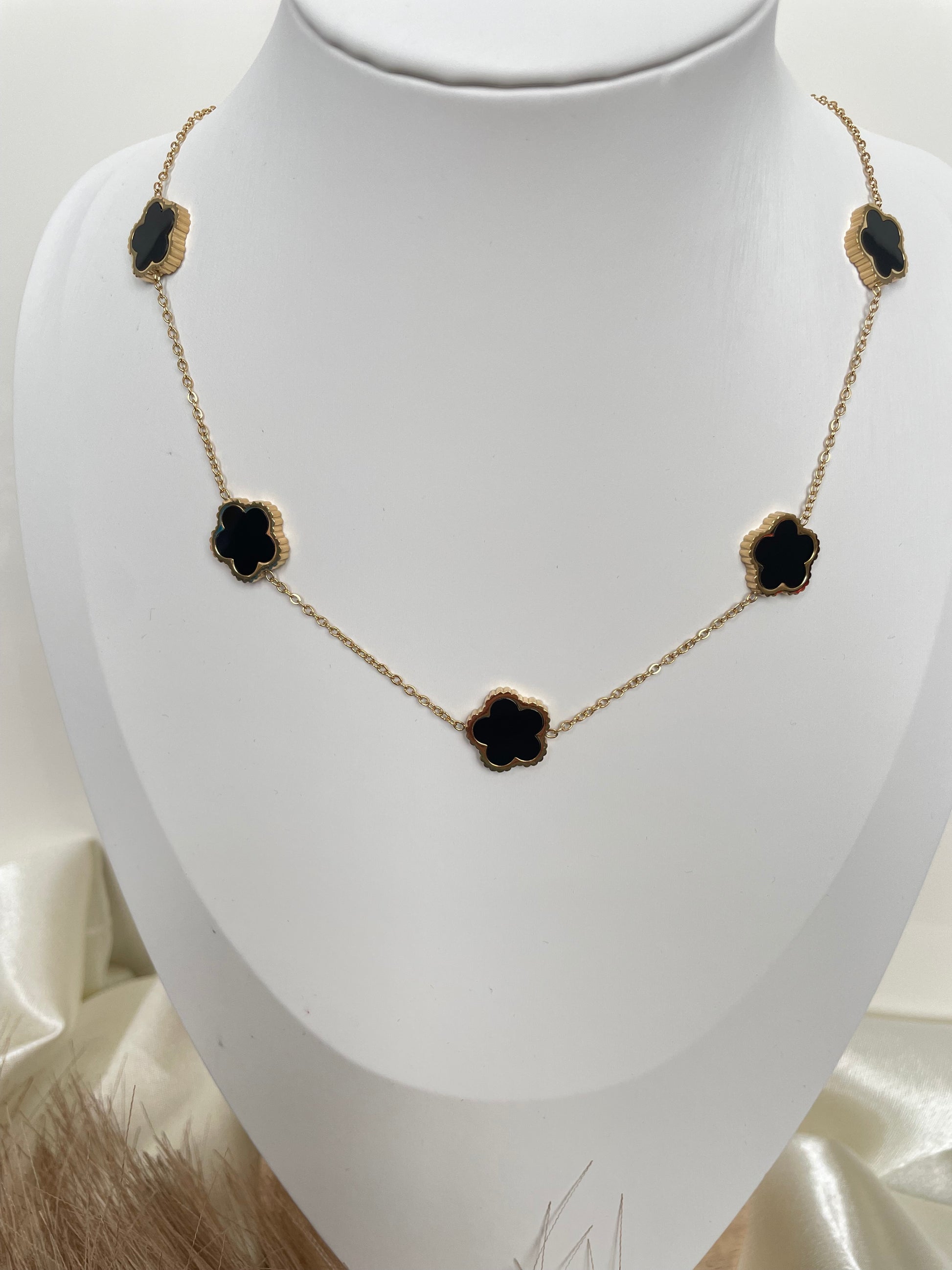• Chaine couleur doré associée à des motifs de fleurs de couleur noir